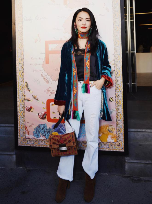印花元素在时尚界的利用率还是蛮高的,毕竟印花元素的种类那么多,为单品创造出更多的风格属性,满足人们在时尚方面的追求,而且印花单品很个性化,基本能解决撞衫的烦恼,同时提升造型的时尚美感,吸睛指数比其他单品要高些。姚晨的穿衣就不乏印花单品,每次亮相总能赚足眼球,这一身绿色丝绒衫配印花缎带就好高级,露出内搭更是抢尽风头。