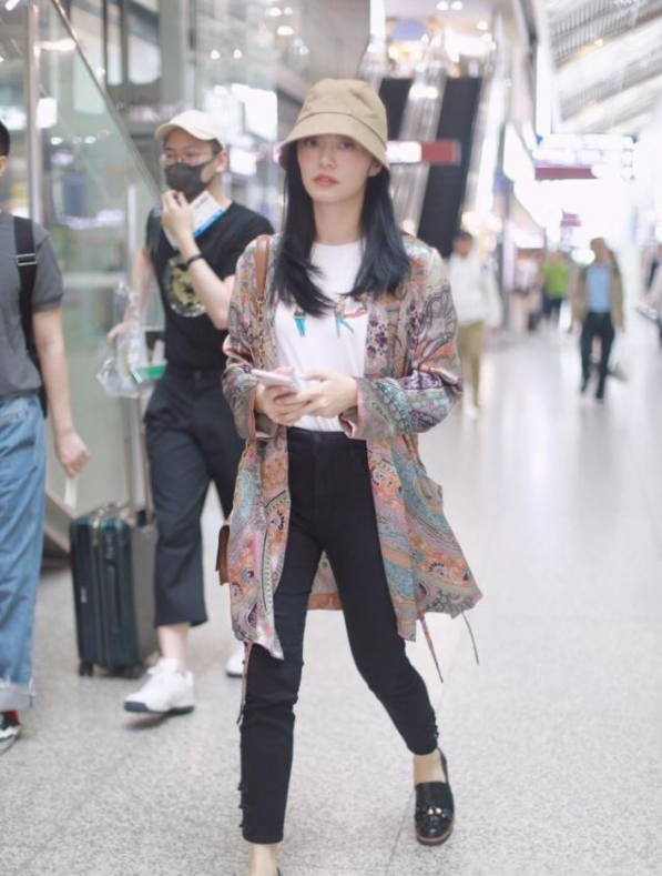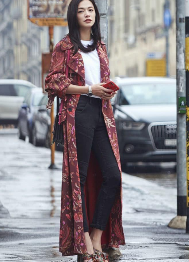 印花图案的面积大小不同,起到的点缀效果也不一样,印花面积大的单品驾驭起来有一定的难度,hold不住的话就成土味时尚了,对大龄女性并不是很友好,印花单品的繁杂感本就很考验个人的时尚驾驭力,而大龄女性穿衣要求简洁大气,两者相冲增加了驾驭难度,好在姚晨自身的时尚表现力很强,并懂得用内搭来减轻印花外套的复杂感,竟也将土味穿成时尚。